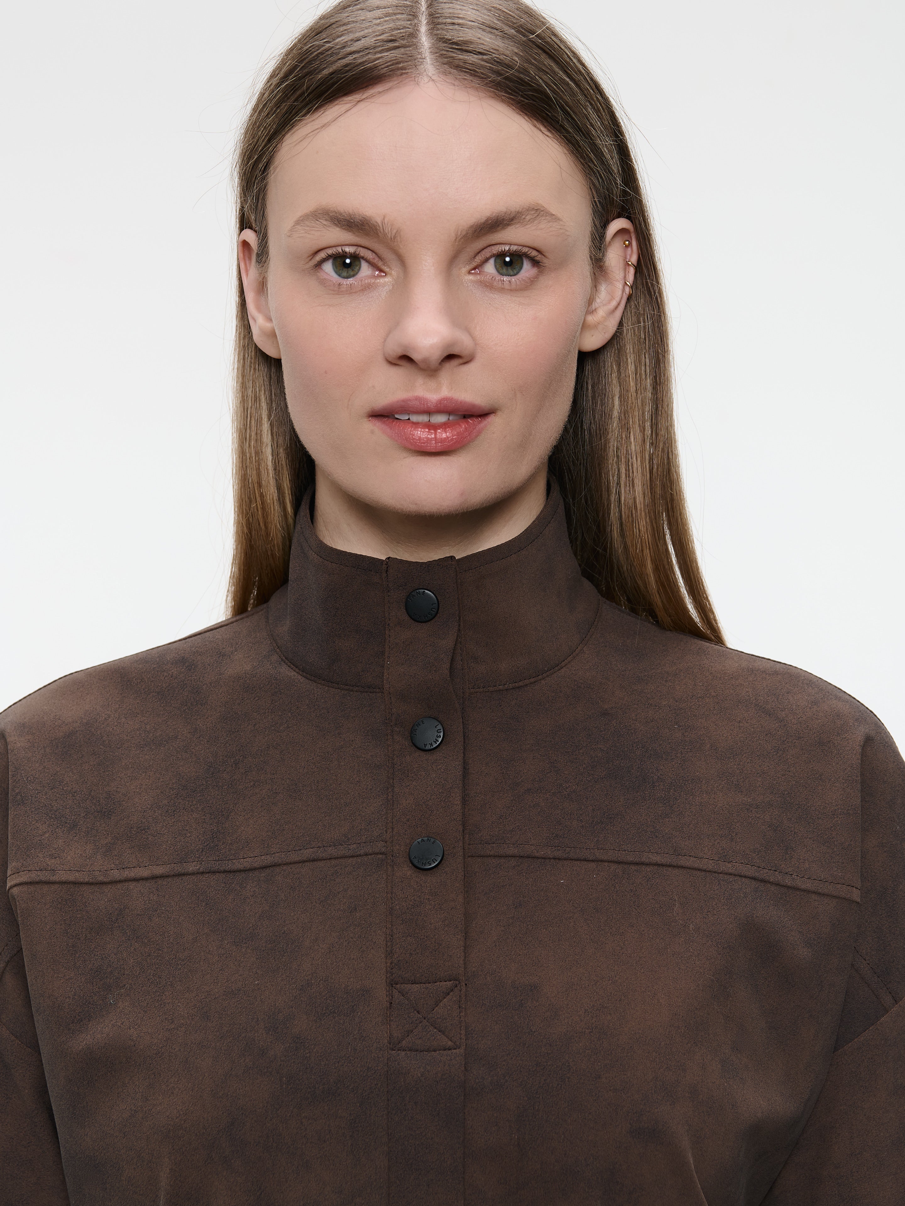 Ready to ship todaySee more detailsEn dristig fusjon av komfort og stil, Angelika-toppen har myk teknisk jersey med semsket look i en rik brun nyanse. Med en ståkrage og asymmetrisk frontklaff, tilbyr dette plagget en moderne edge samtidig som det beholder en ren silhuett. Ideell å kombinere med skreddersydde bukser eller avslappede skjørt, og gir en uanstrengt chic appell.