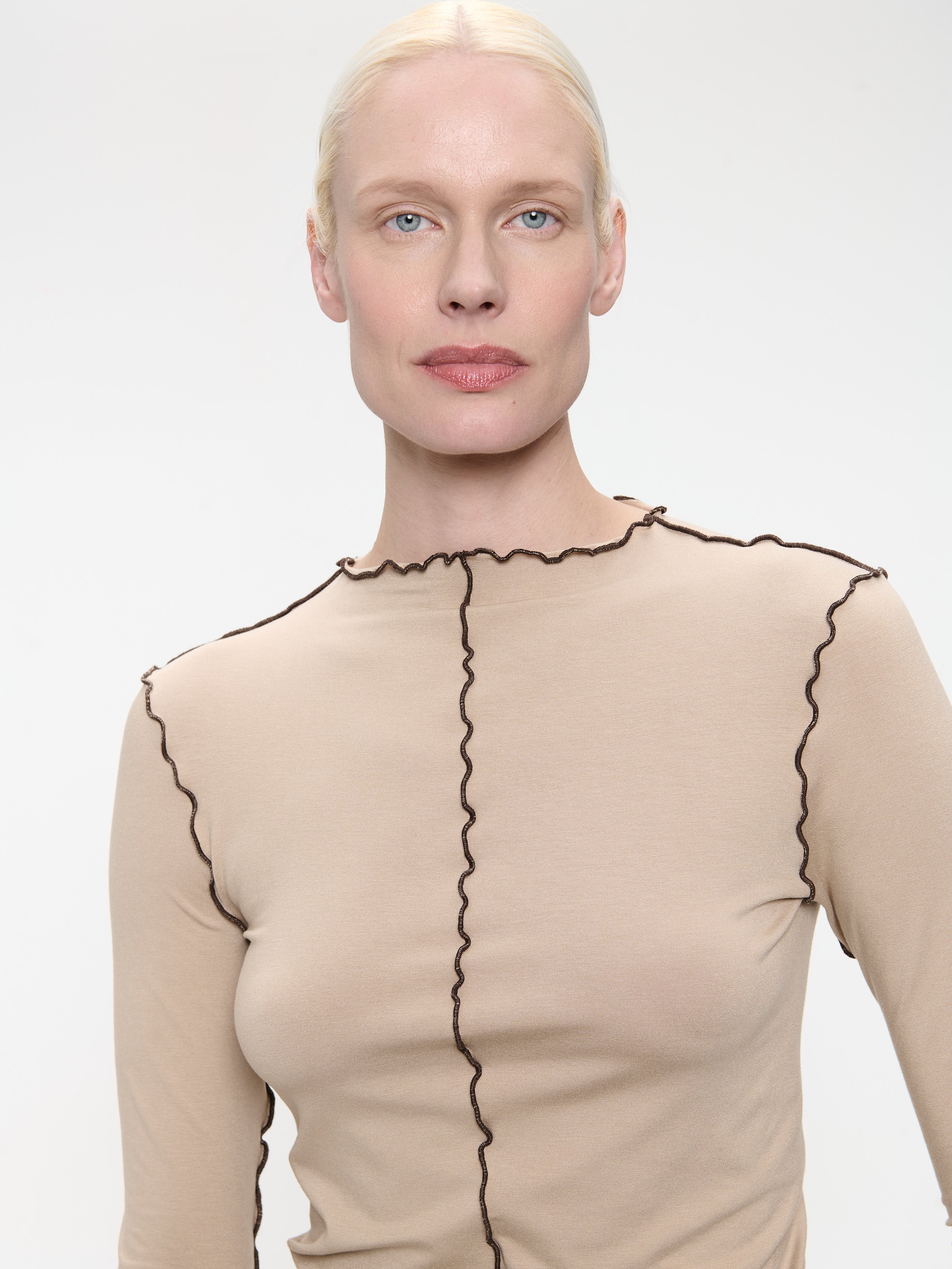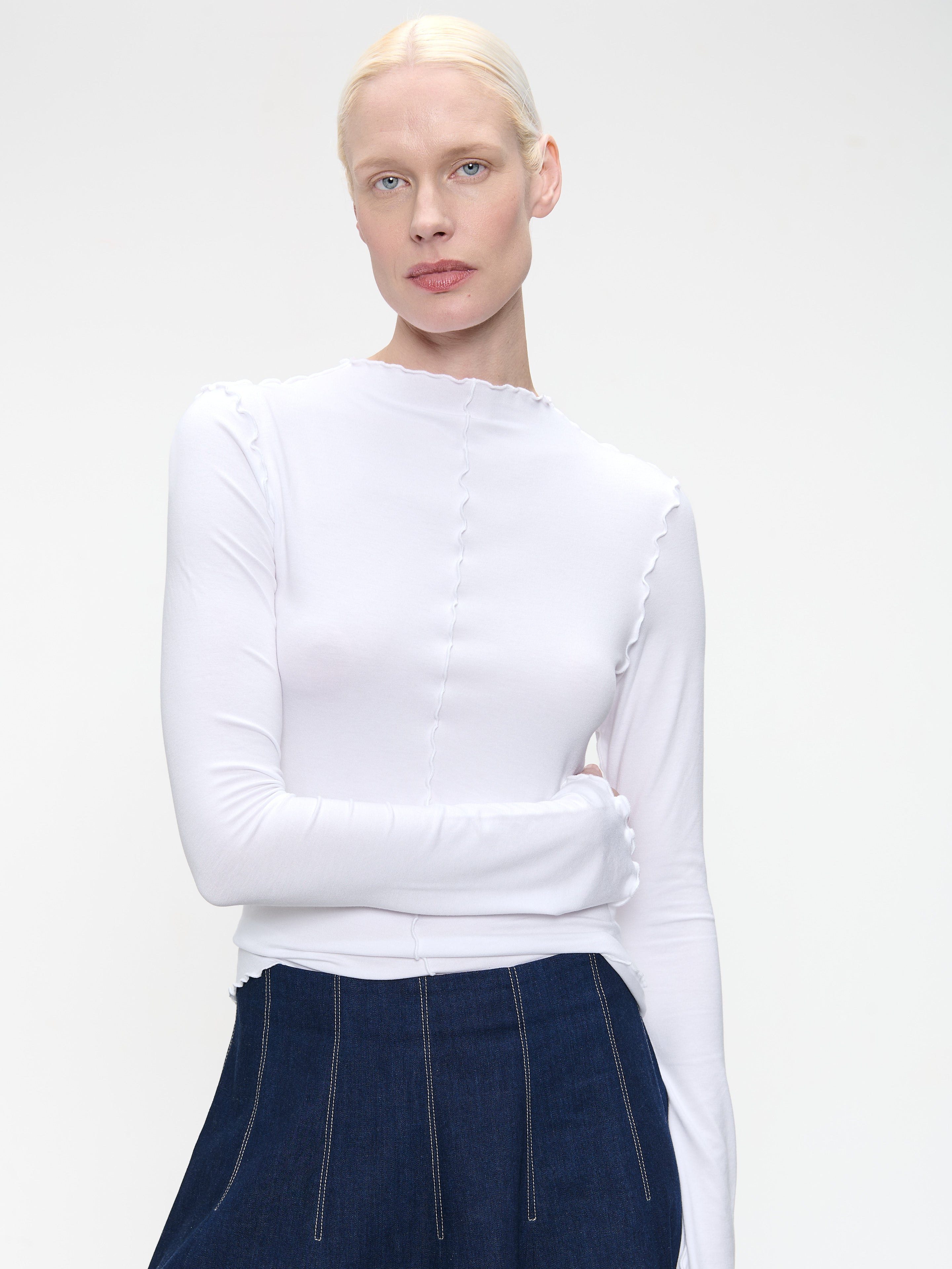 Ready to ship todaySee more detailsJanette-toppen kombinerer klassisk komfort med lekne detaljer. Laget av en myk og elastisk viscoseblanding, har denne langermede toppen subtile babylock-kanter langs halsen, mansjetter og kant for en raffinert finish. Med sin figurnære silhuett og tidløse design er den perfekt både som et enkelt plagg eller lagdelt under jakker og gensere.