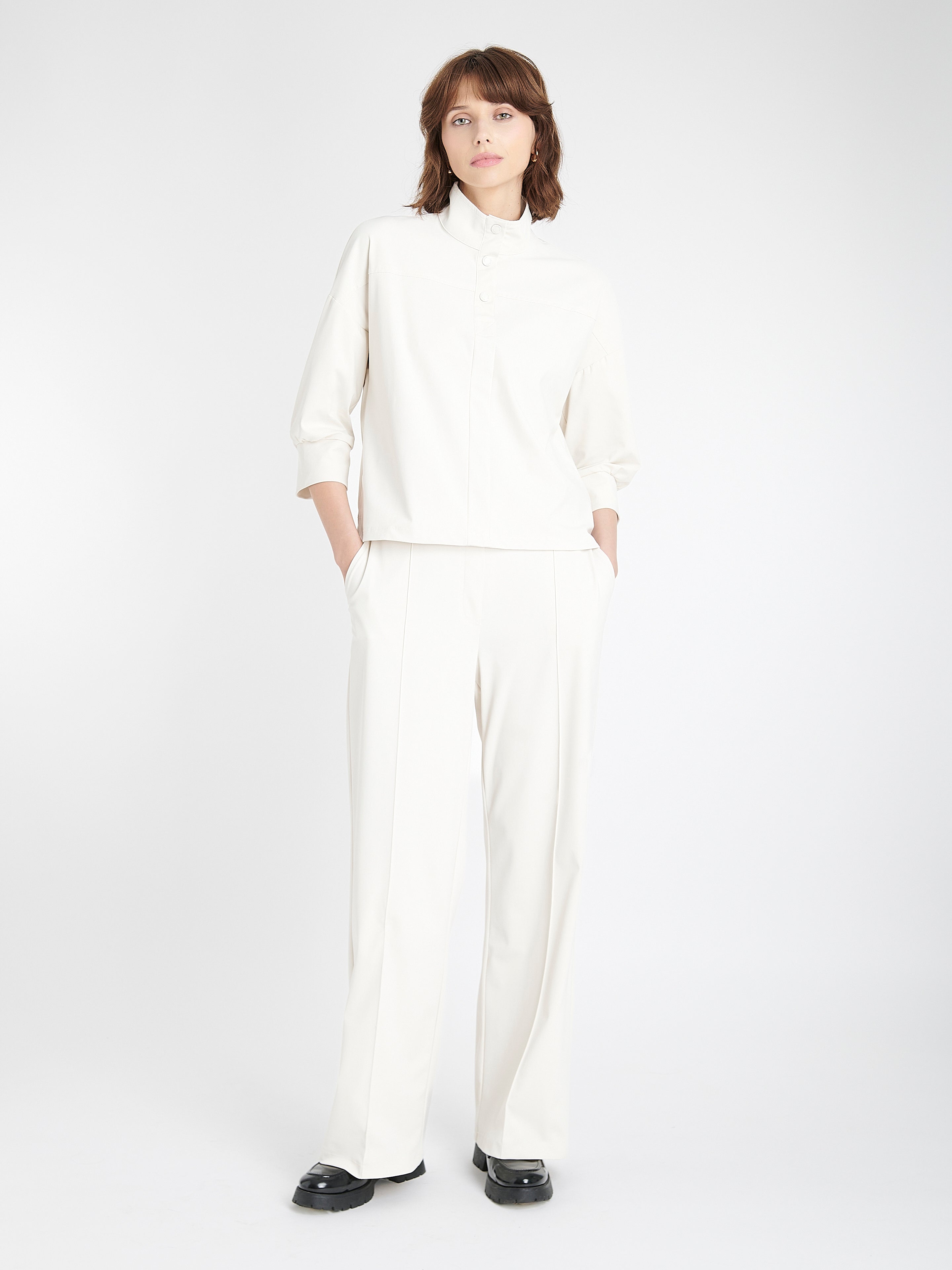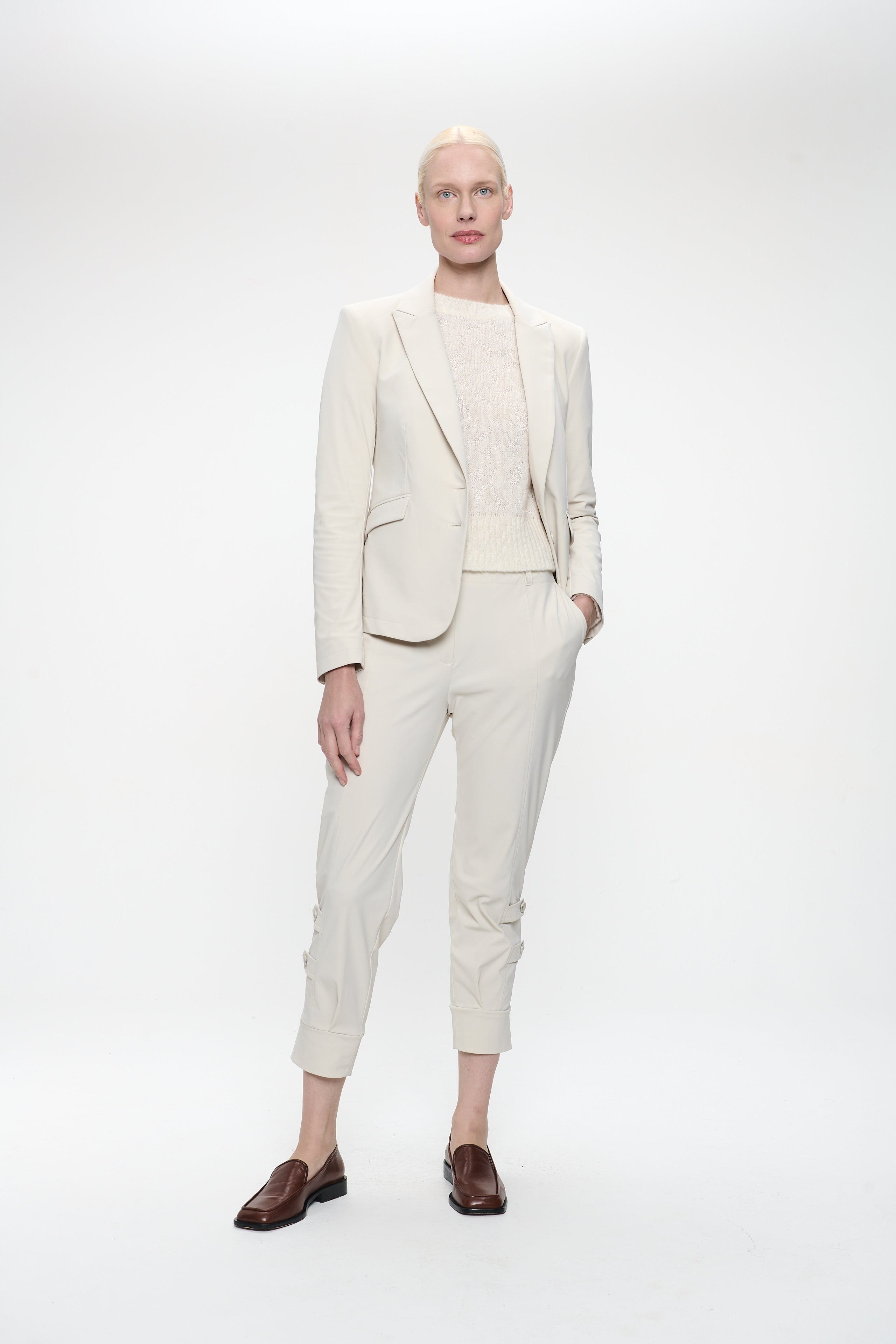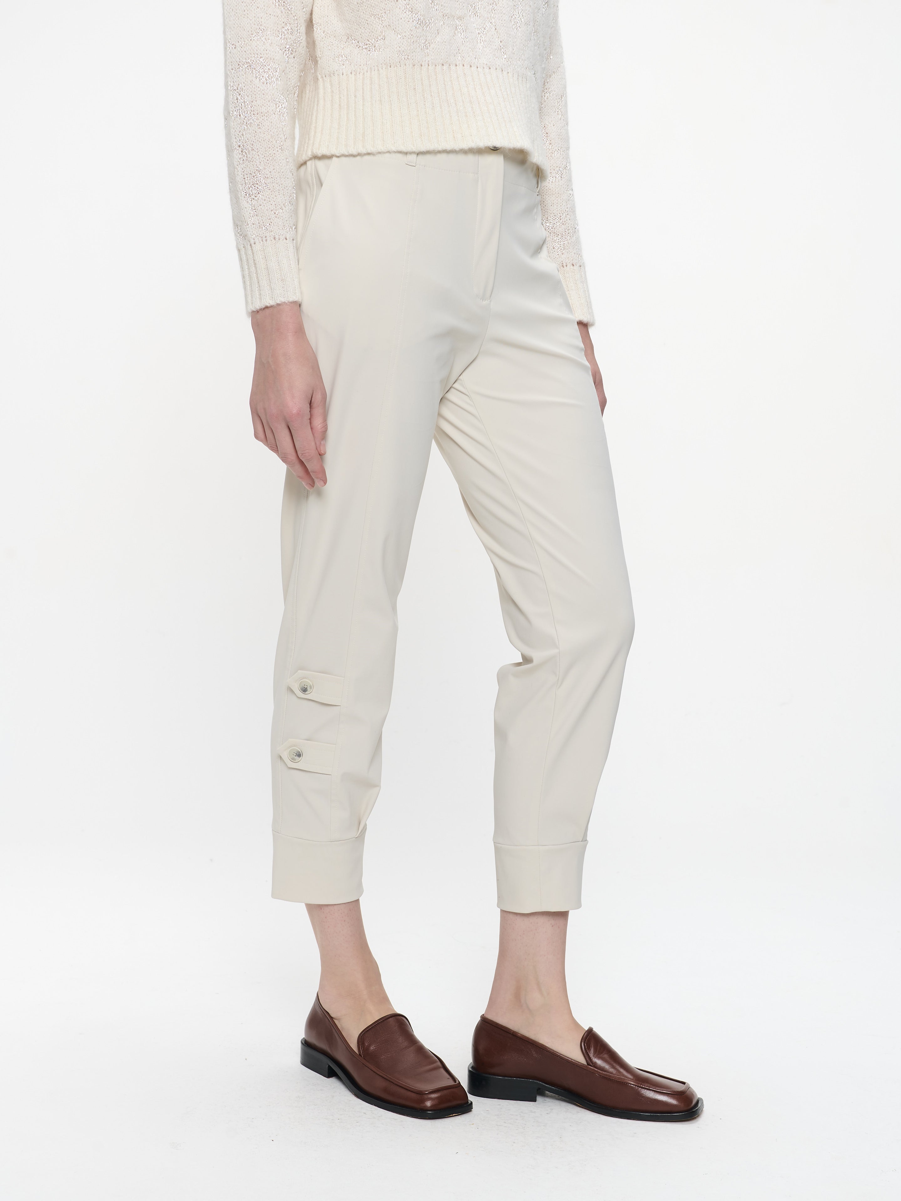 Ready to ship todaySee more detailsDelia-buksen kombinerer eleganse og komfort på en perfekt måte. Den er laget av børstet teknisk jersey med semsket følelse og har en avsmalnende, cropped benlengde med dekorative knapper nederst. Den raffinerte silhuetten gjør den til et allsidig plagg – ideelt for jobb, reise eller kveldsbruk.