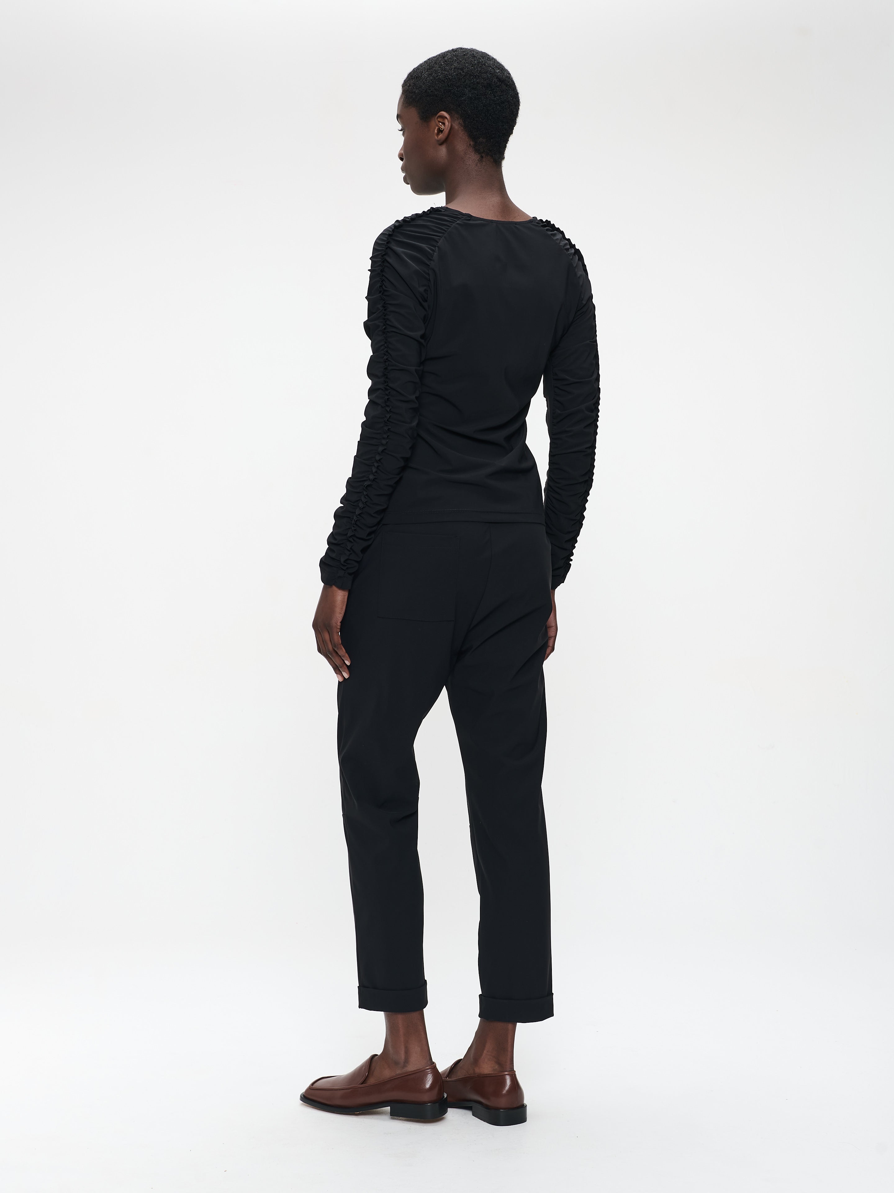 Ready to ship todayCarlin Top: Løft garderoben din med Carlin Studio Top, laget av høyteknologisk jersey. Denne toppen har en slank silhuett og oppbrettede lange ermer, og kombinerer moderne stil med komfort.See more details