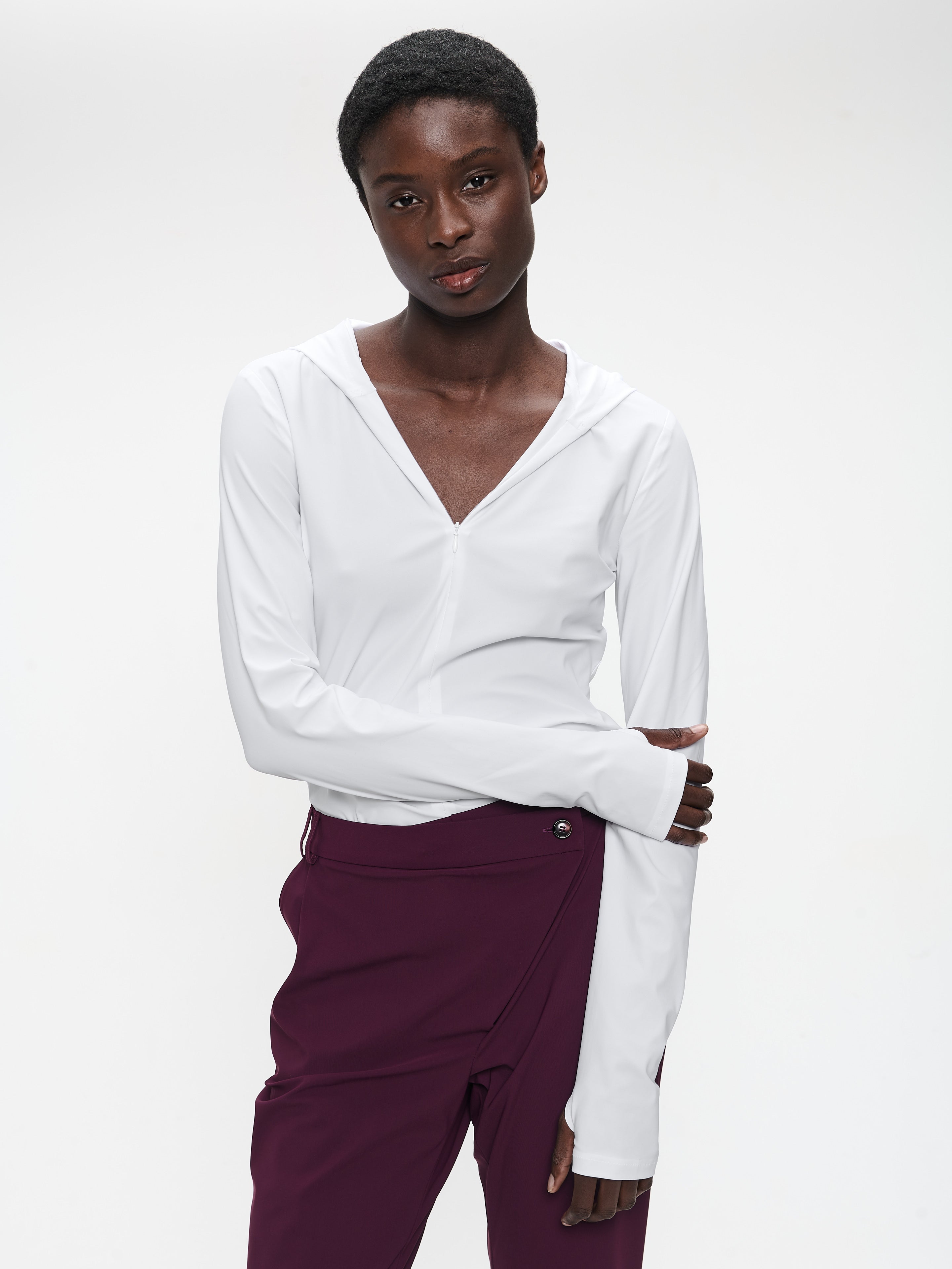 • Lange tettsittende ermer med tommelhull