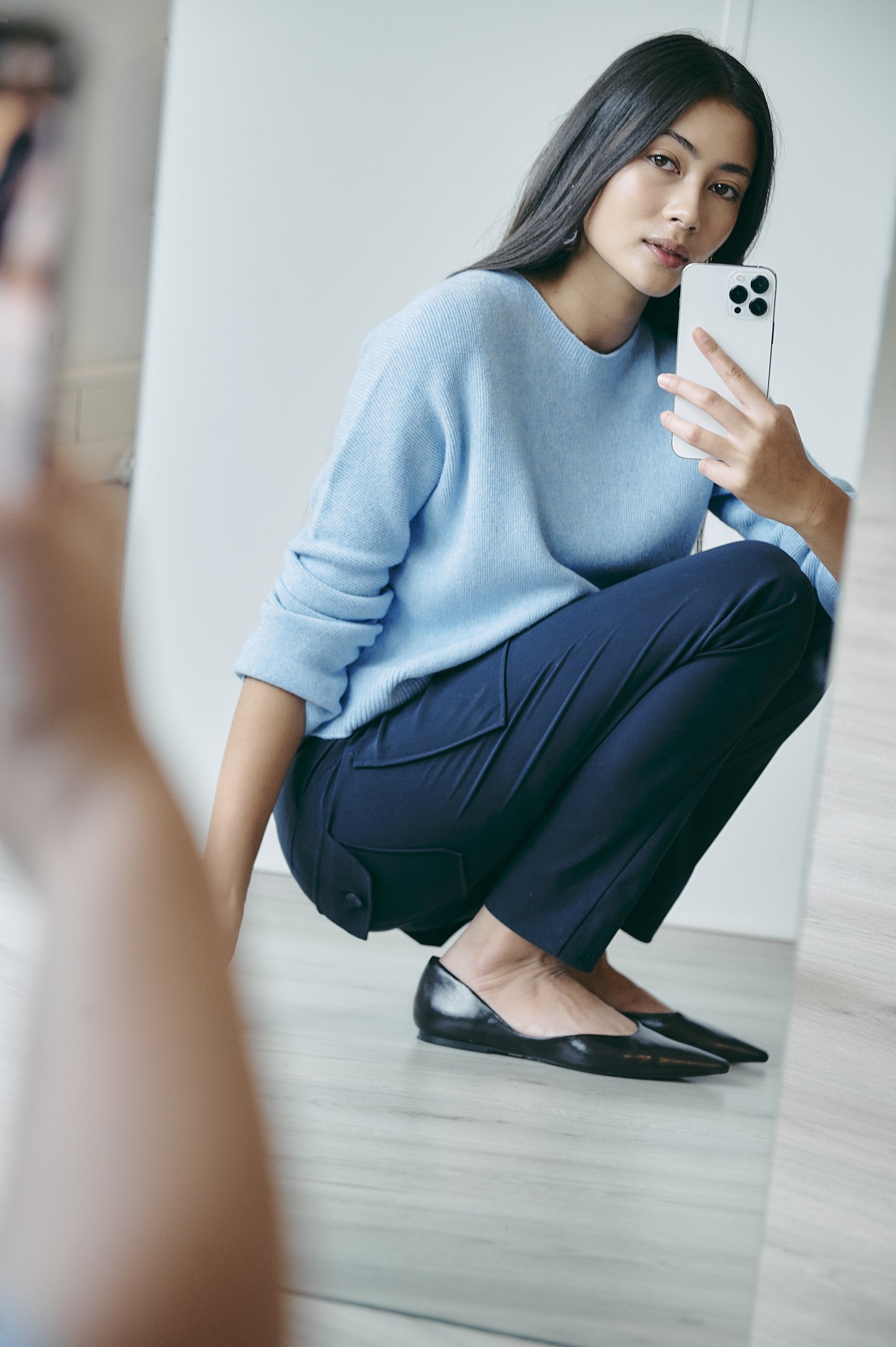 - Erme: opprullede lange ermer