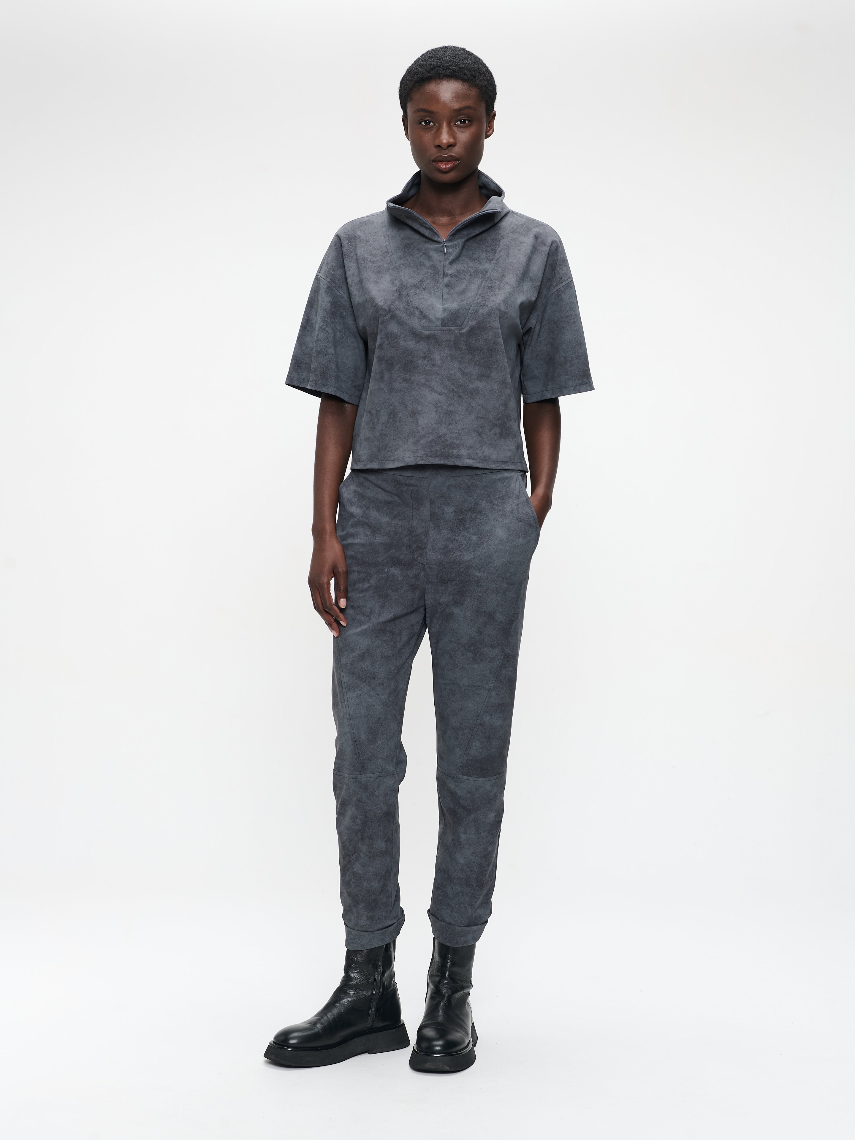 Ready to ship todaySee more detailsTimelia-buksen kombinerer moderne struktur med lun komfort. Den er laget i myk teknisk jersey med semsket tekstur og har avsmalnende ben med oppbrettede kanter – en stilren og avslappet silhuett. Perfekt for kjøligere dager og enkel å style med matchende topper eller chunky strikk.
