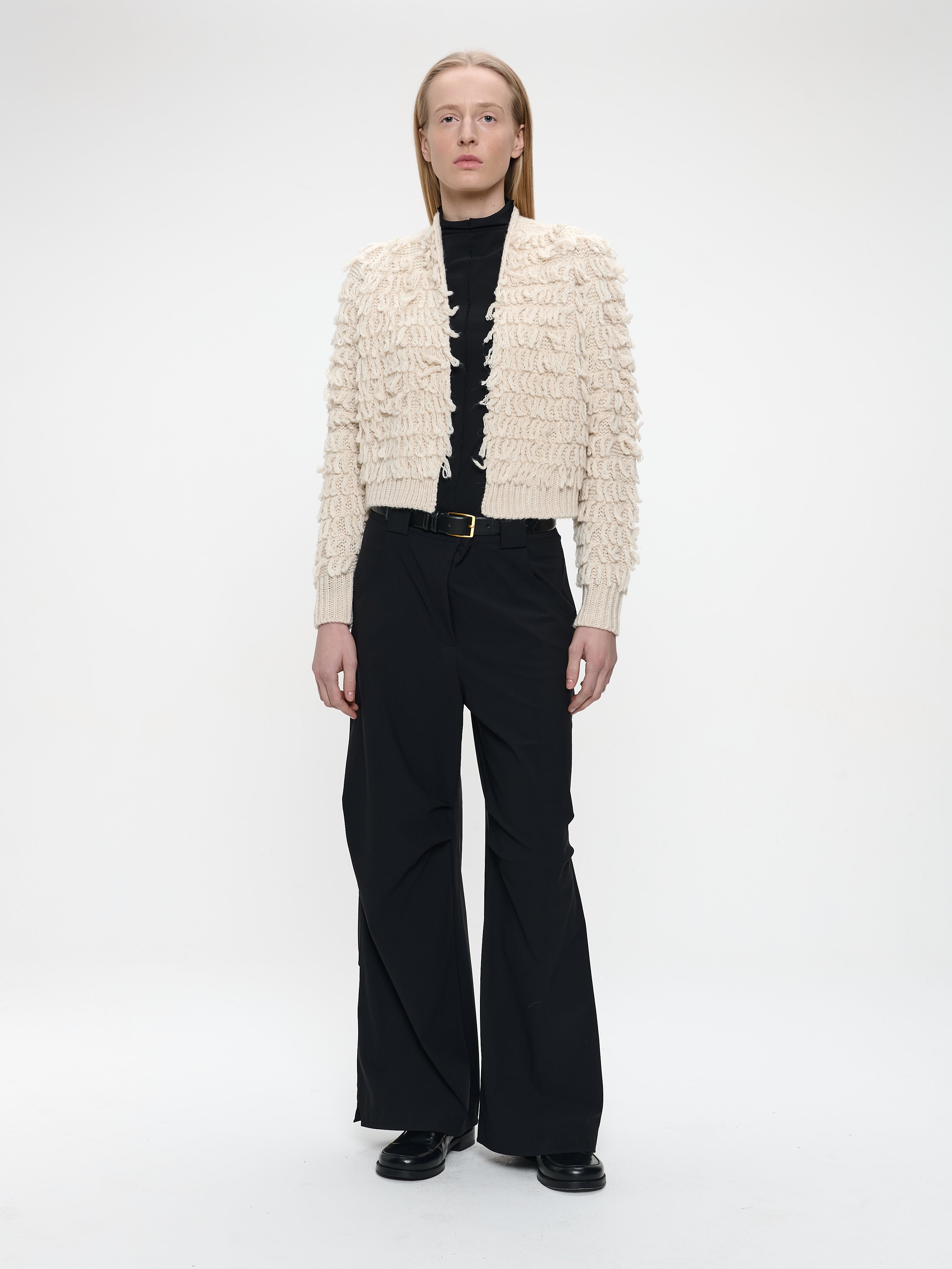 Cardigan 1137 er et iøynefallende lag-på-lag-plagg fra AW25-kolleksjonen som gir tekstur og karakter til ethvert antrekk.