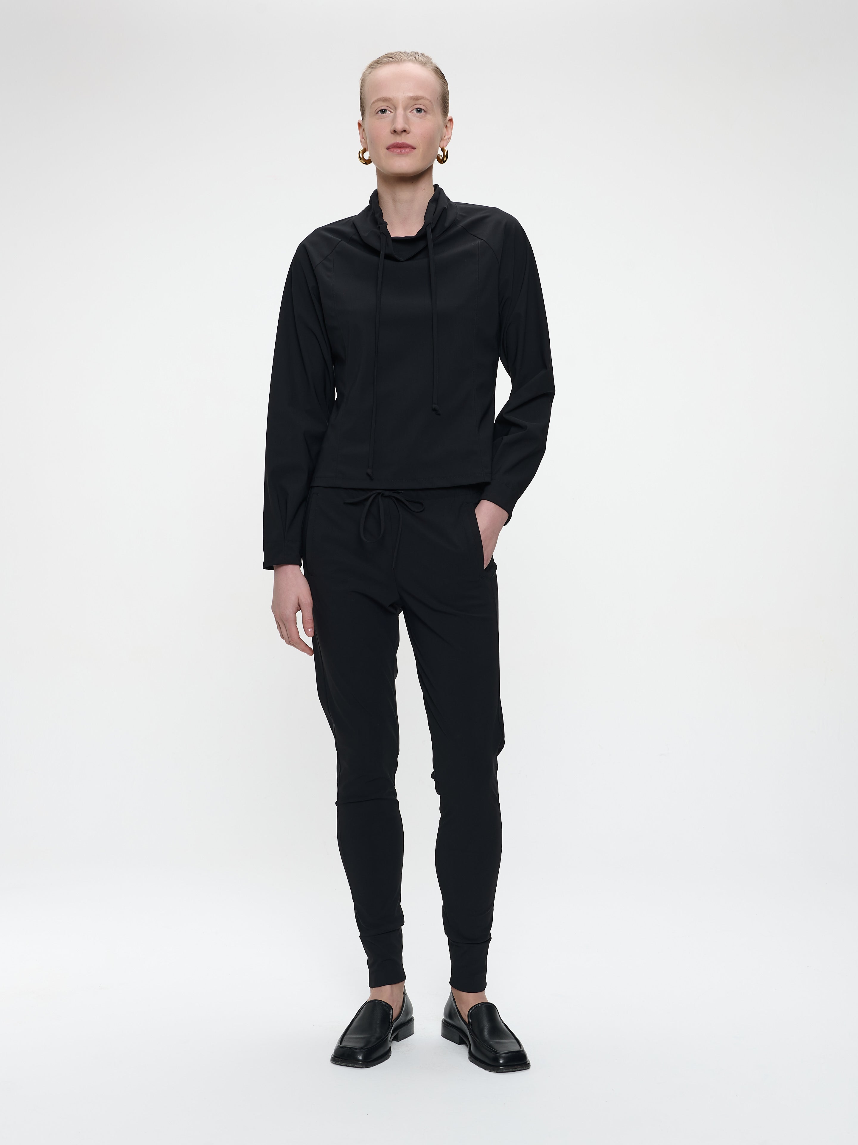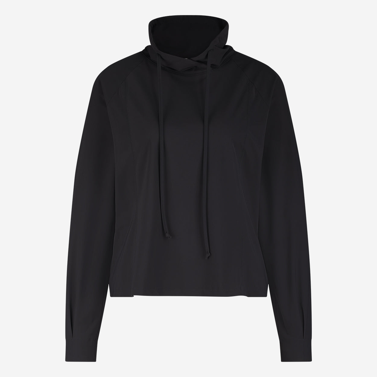 Enkelt, men stilig, redefinerer Maren-toppen sporty eleganse med sin rene silhuett og funksjonelle detaljer. Laget av teknisk jersey for fleksibilitet og komfort, har denne toppen en høy krage med hette og raglanermer som gir bevegelsesfrihet. Perfekt for aktive dager eller avslappede looks med et raffinert preg.