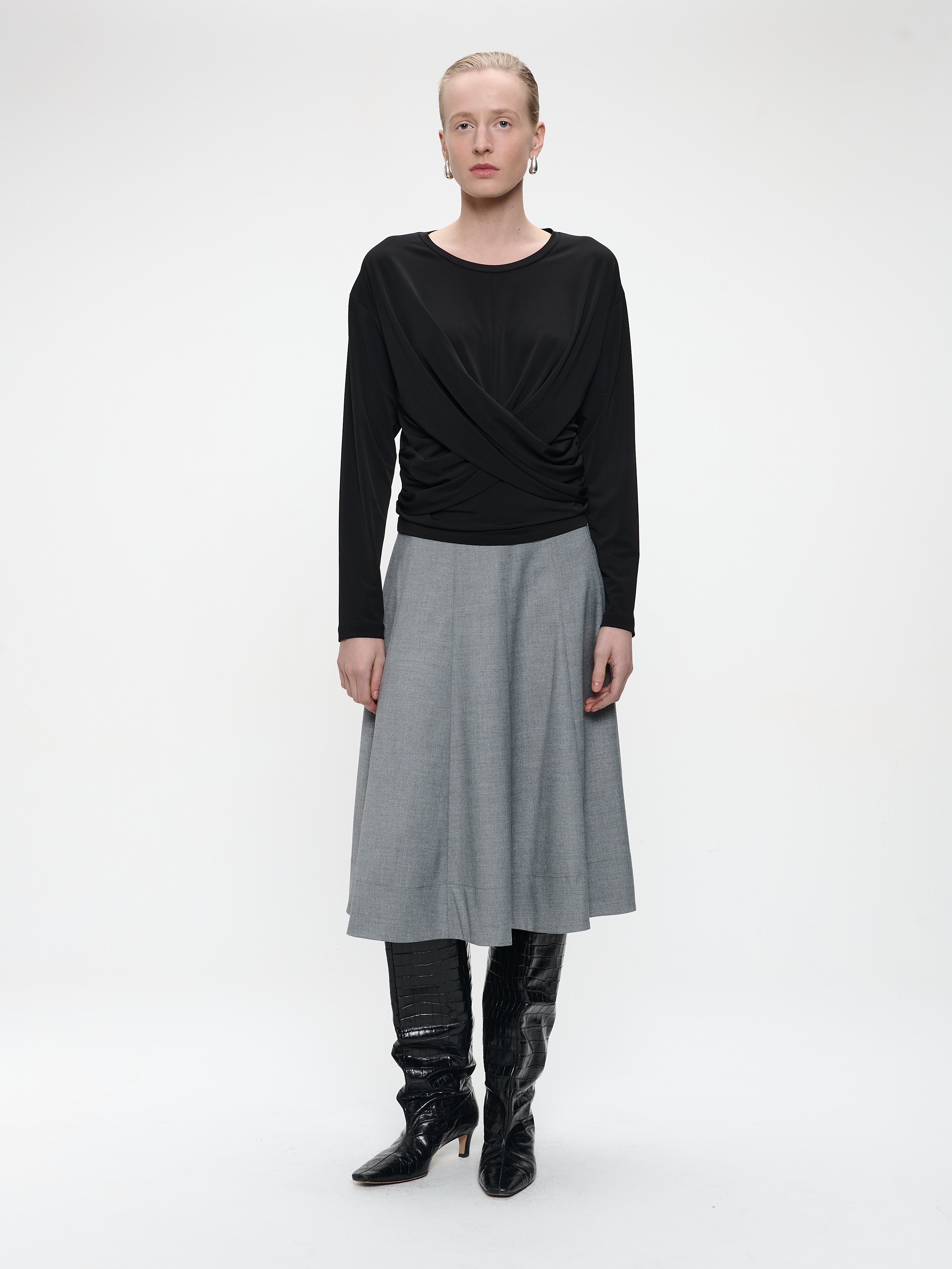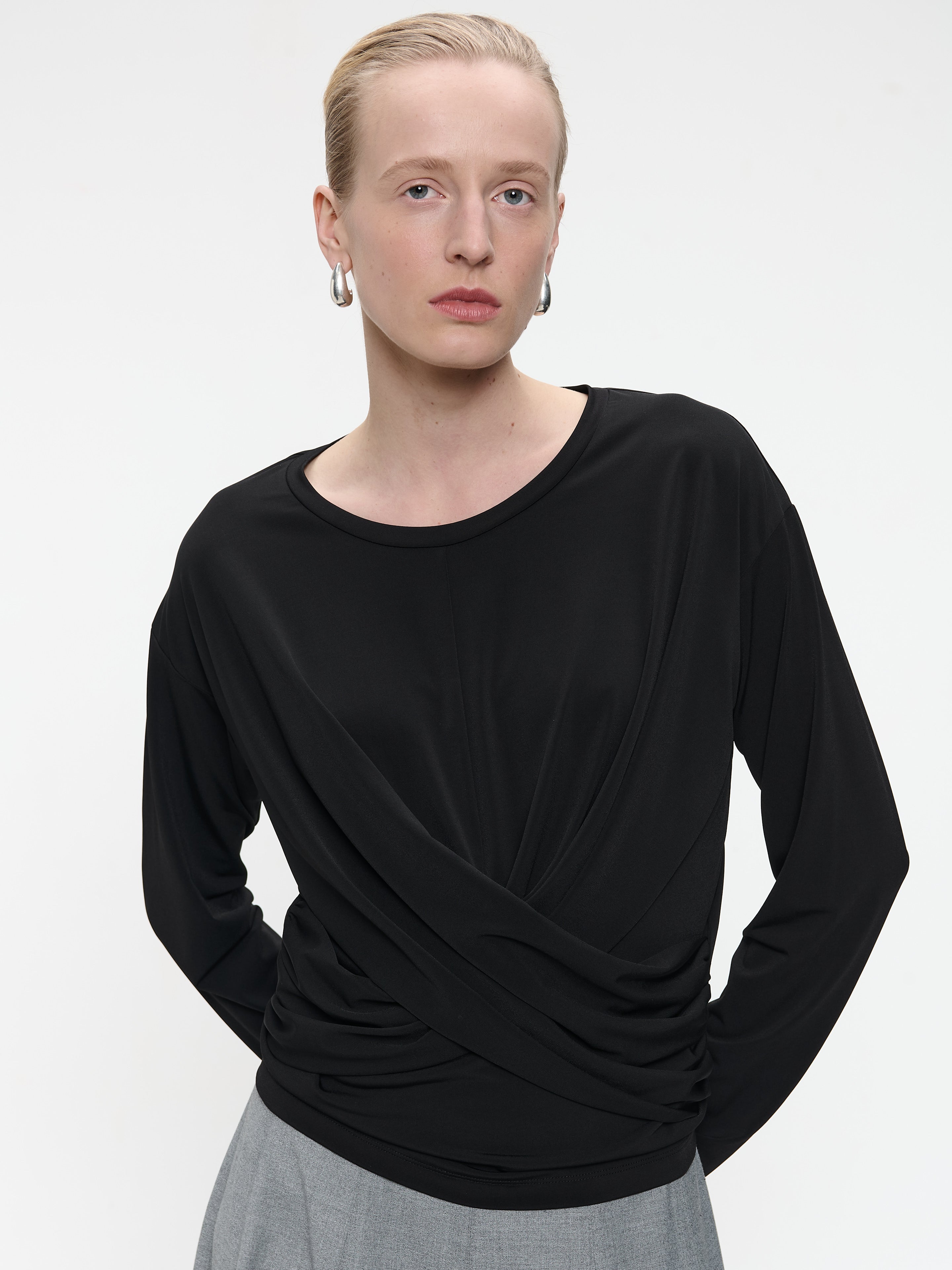 Elegant med en vri – Loren-toppen redefinerer enkelhet med et moderne preg. Laget av en myk blanding av resirkulert viskose, har denne langermede toppen en iøynefallende kryssdrapering foran som skaper myke folder og fremhever silhuetten. Et allsidig valg som tilfører subtil sofistikasjon til din hverdagsstil.