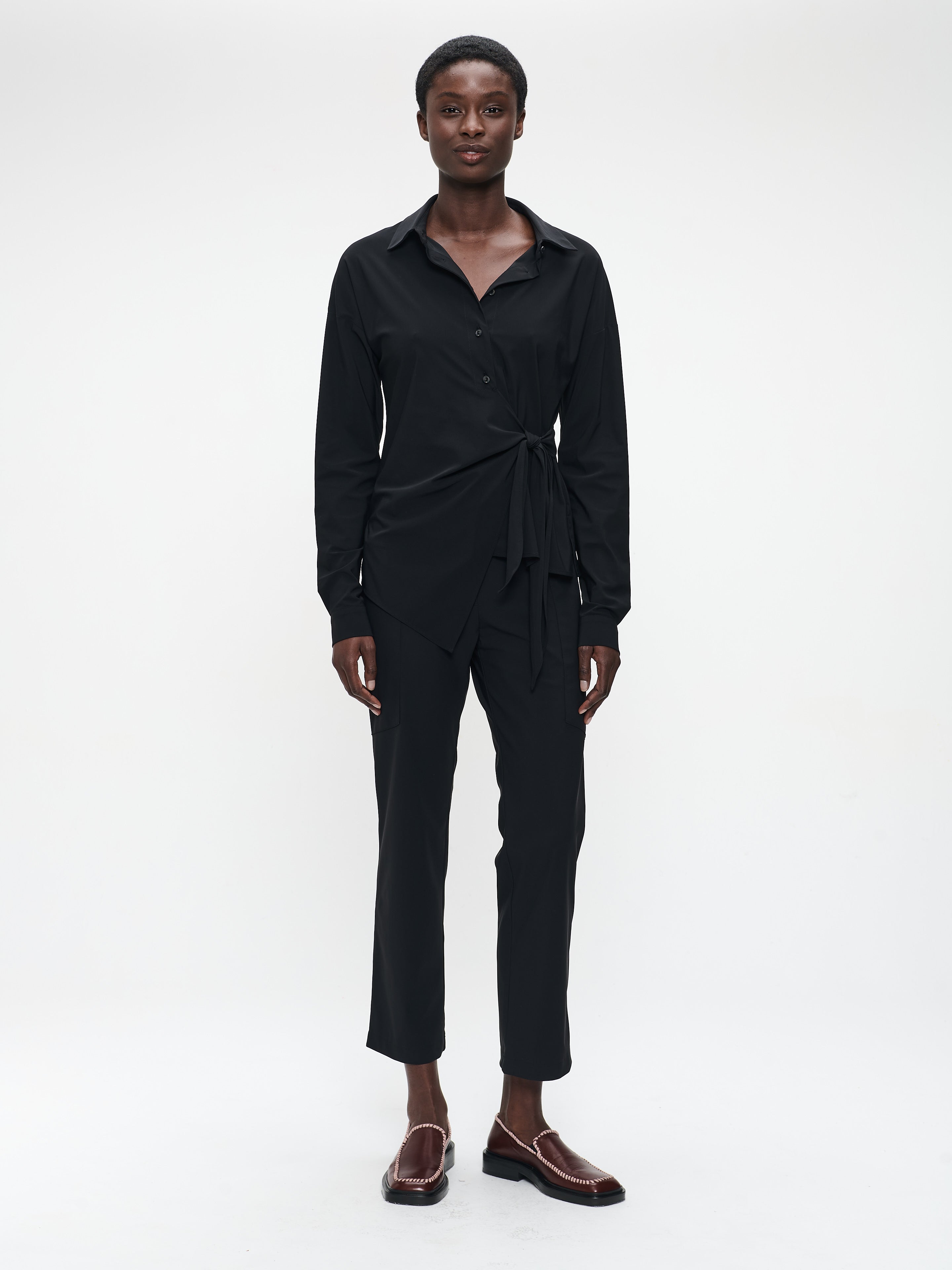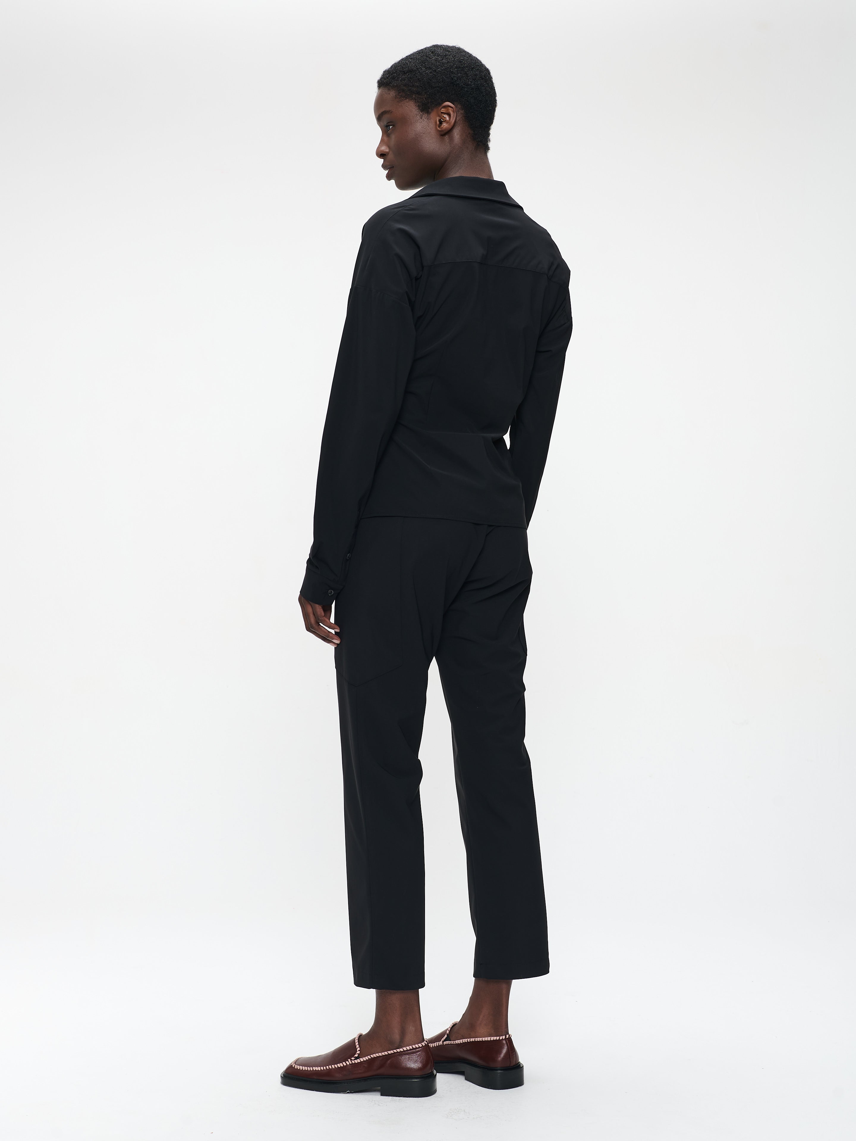 Elegant og lett å ha på, Norena Technical Jersey Blouse gir moderne eleganse til hverdagsantrekk. Laget av mykt stretchjersey, har denne blusen en klassisk skjortekrage og et asymmetrisk bånd i midjen som fremhever silhuetten på en flatterende måte. Lange ermer med mansjetter og en lett buet kant gir et raffinert preg, noe som gjør den perfekt for både formelle og avslappede antrekk.